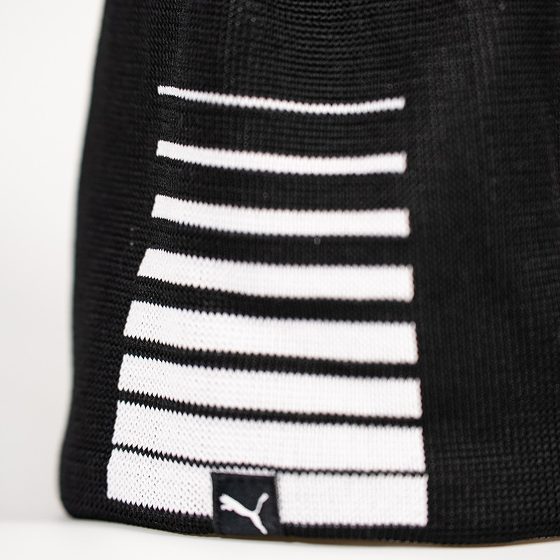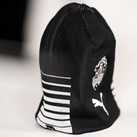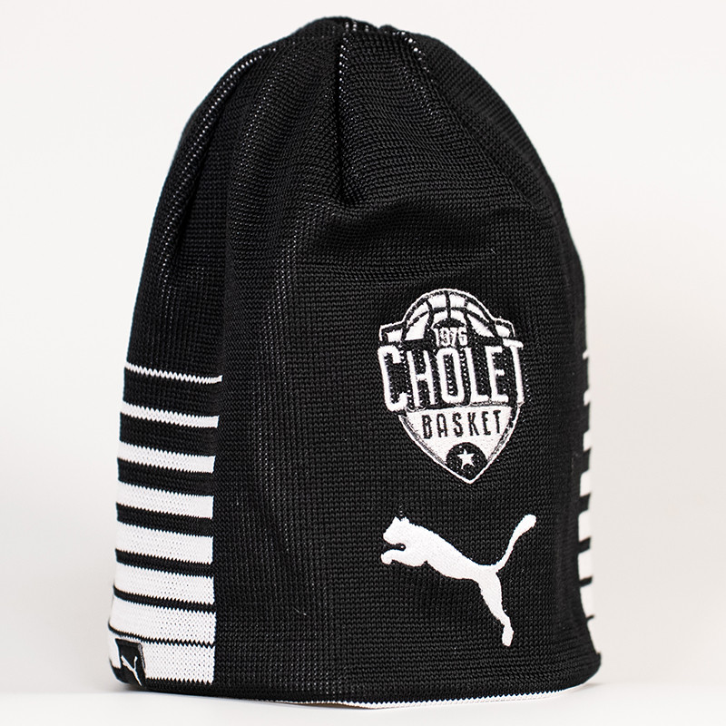 Bonnet noir avec des rayures blanches sur les côtés et logo Cholet Basket et logo Puma devant.