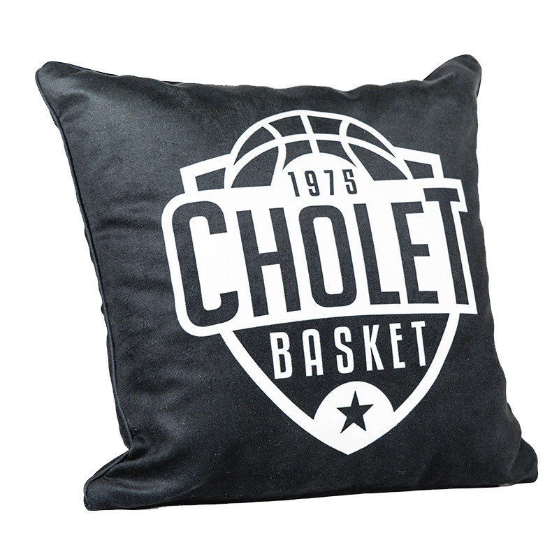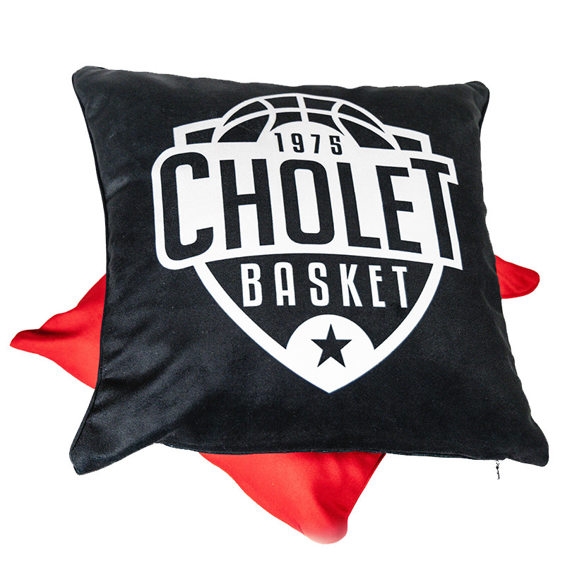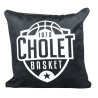 Coussin noir avec le logo blanc de Cholet Basket sur un seule face du coussin.