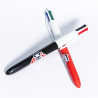 Stylo bille BIC 4 couleurs en plastique. Encres noire, bleue, rouge, verte. Logo CB.