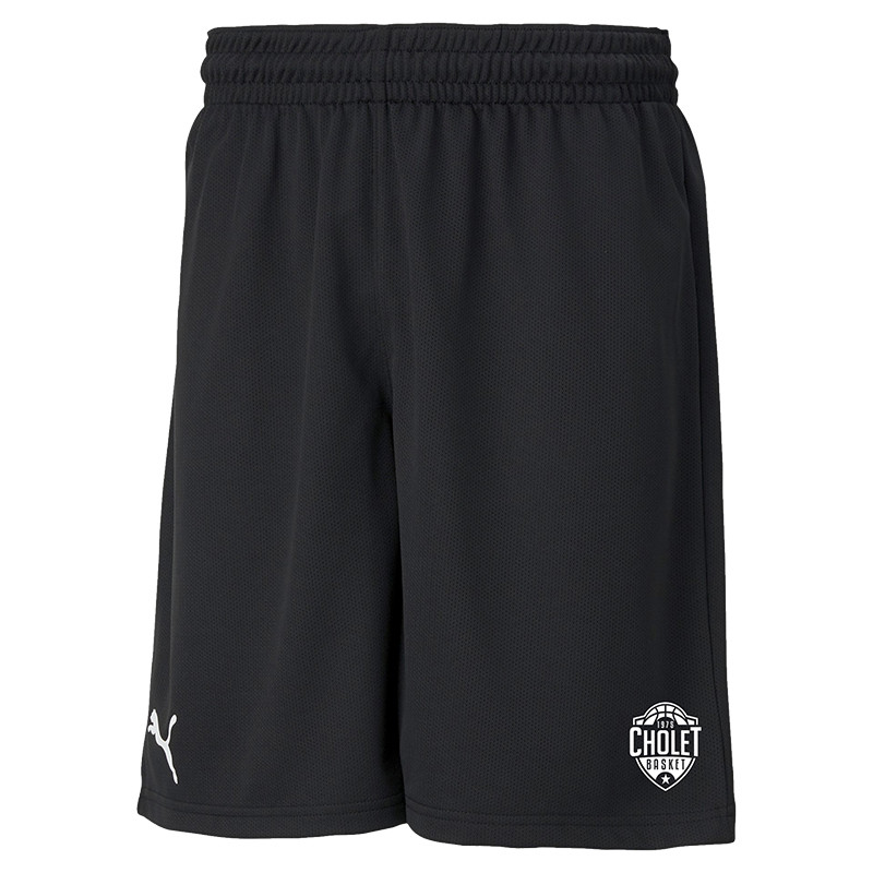 Petit logo Cholet Basket en bas de la jambe gauche et petit logo Puma Cholet Basket en bas de la jambe droite.