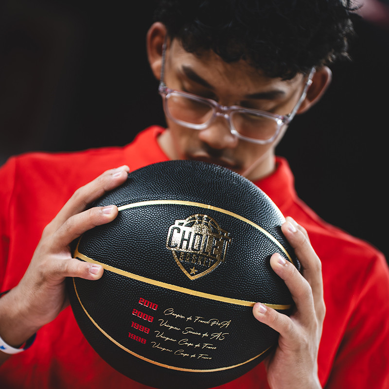 Ballon noir, doré et rouge. Logo or CB. Tailles 3 à 7. Ballon vendu dégonflé.