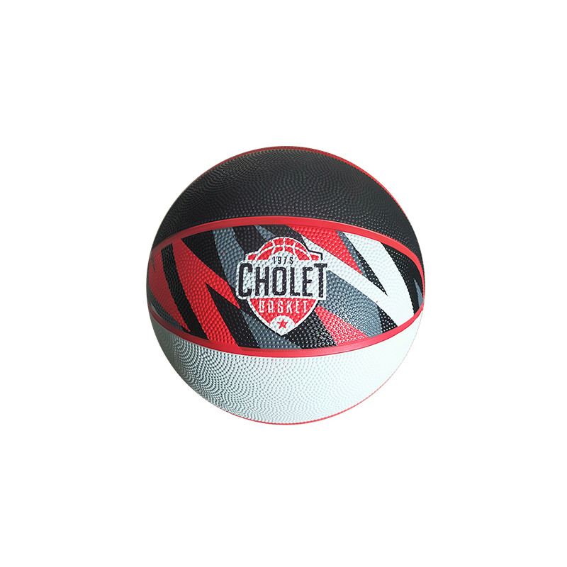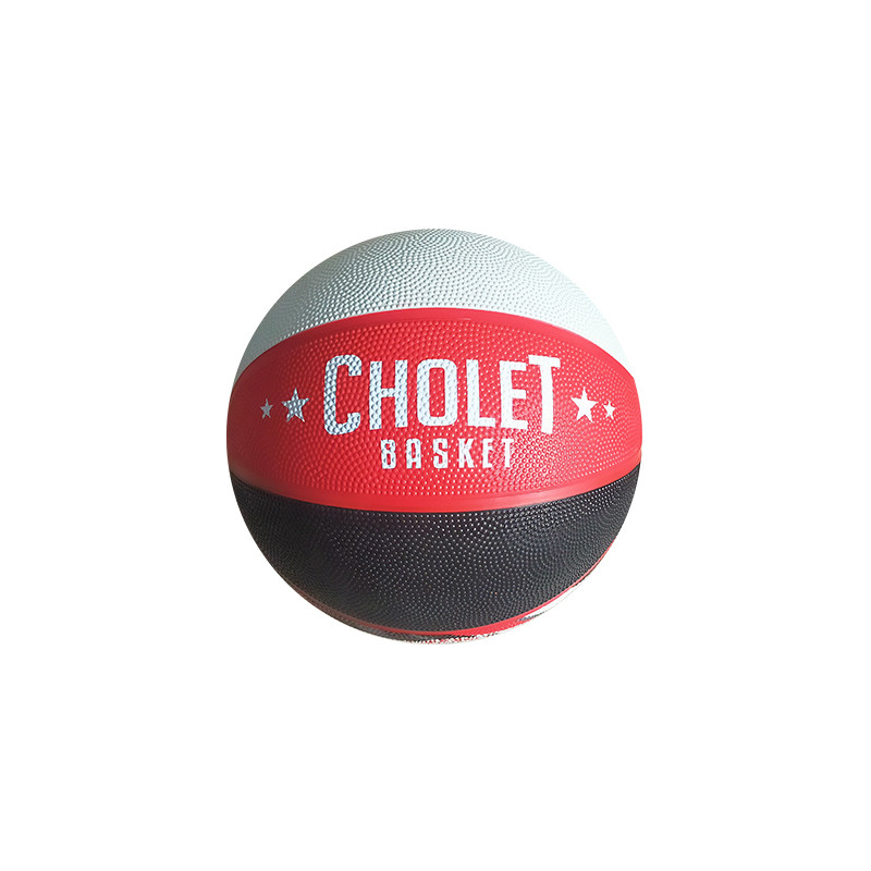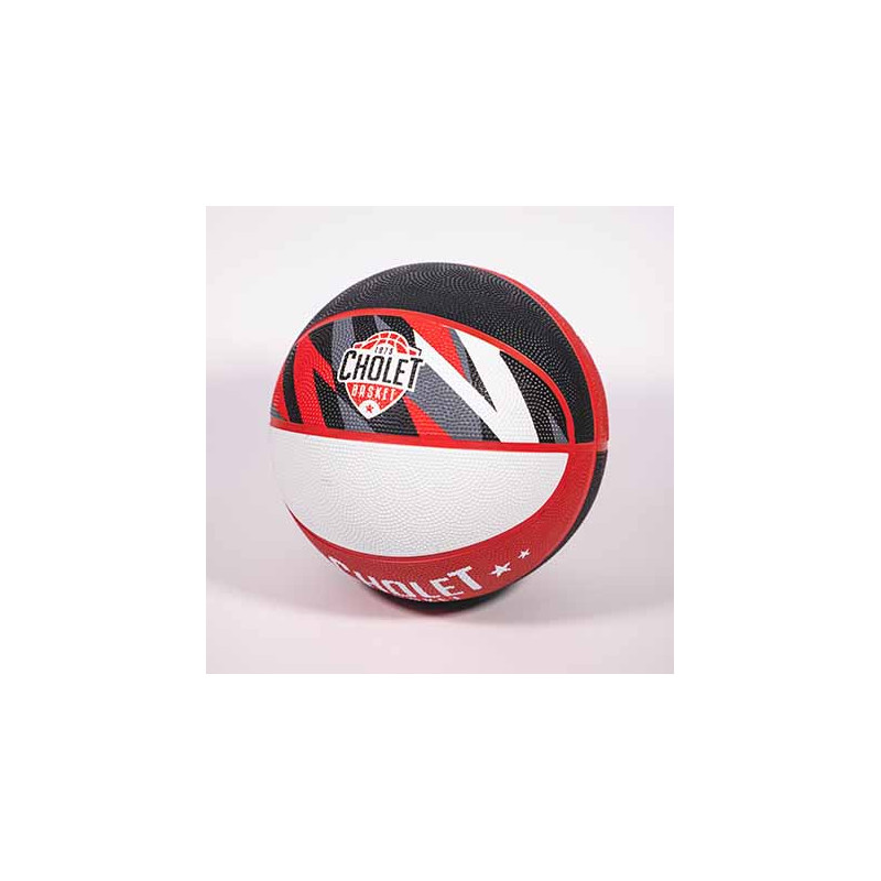 Ballon rouge, gris, noir et blanc. Logo CB. Grip anti-glisse.