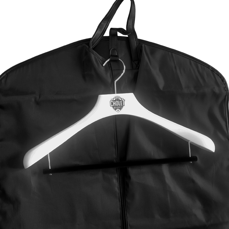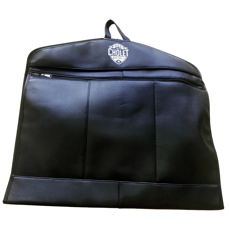 Housse de costume noire avec le logo blanc de Cholet Basket.