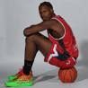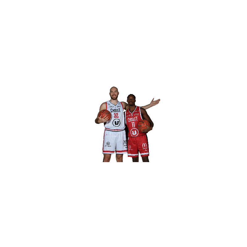 Matériau respirant. Evacuation de la transpiration du corps. Produit Puma. Logos : ADC, Système U, Bio'Bric, LNB, Puma (sur le devant). Cholet Basket et Le Verger de la Blottière (au dos).