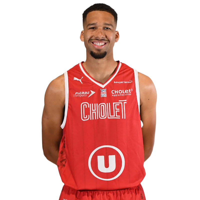 Matériau respirant. Evacuation de la transpiration du corps. Produit Puma. Logos : ADC, Système U, Bio'Bric, Pierre Transports, LNB, Puma (sur le devant). Logos de Cholet Basket et du Verger de la Blottière (au dos).