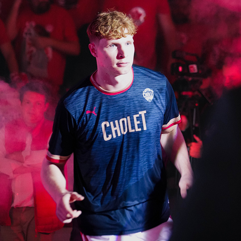 Logos : Cholet Basket, Puma et Groupe Hofica au dos.