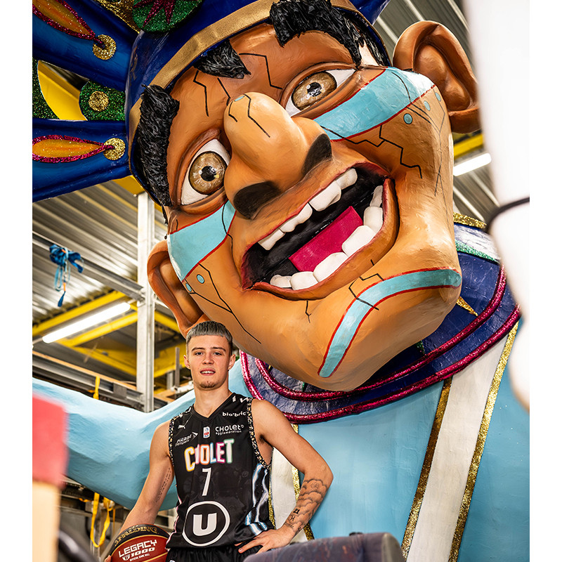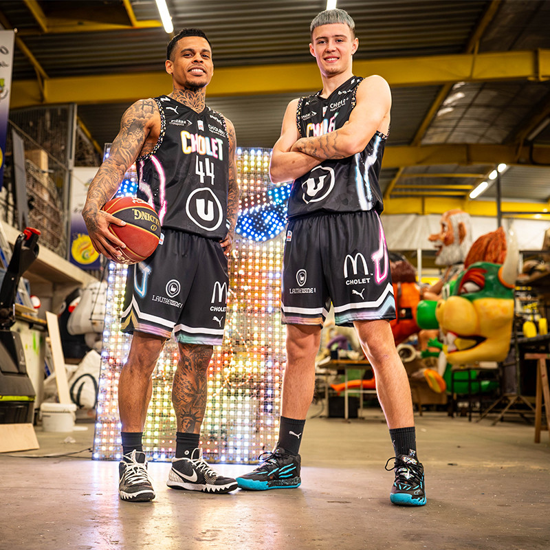 Maillot Carnaval 2024. De couleur principale noire, avec de nombreux détails lumineux, très colorés.