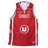 Matériau respirant. Evacuation de la transpiration du corps. Produit Puma. Logos : ADC, Système U, Bio'Bric, LNB, Puma (sur le devant). Cholet Basket et Le Verger de la Blottière (au dos).