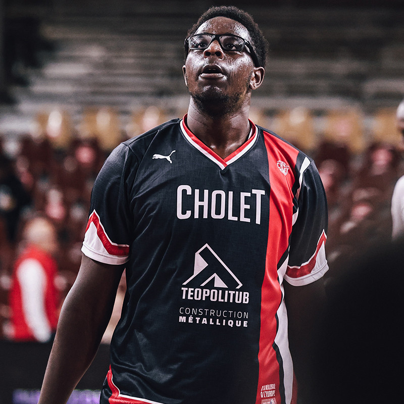 Matériau respirant. Evacuation de la transpiration du corps. Produit Puma. Logos : Puma, Cholet Basket, Teopolitub et Hofica (au dos).