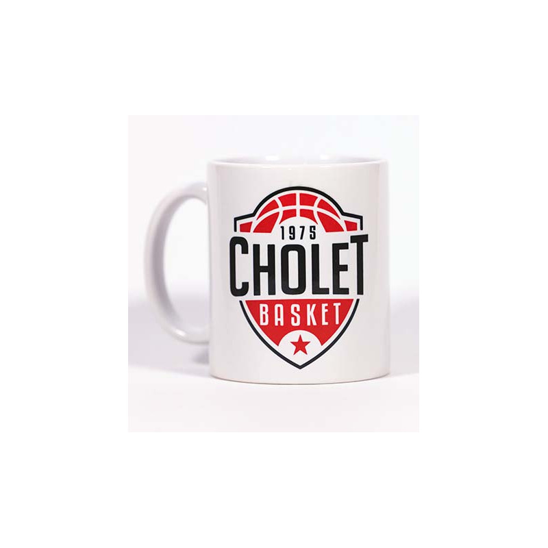 Mug en céramique blanc 30 cl. Dimensions : 80 mm de diamètre x 91 mm de hauteur. Marquage 1 Logo Cholet Basket 3 couleurs.